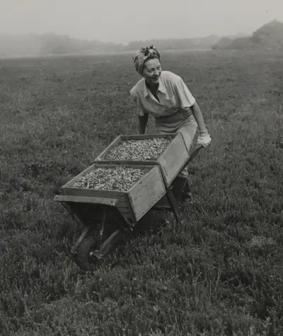 Two ways to do it. The first is dry harvest. Basically, a giant lawnmower combs the crimson berries from their vine. The other is wet harvest. Where we churn the bog water with the biggest “egg beaters” imaginable. The ripe berries rise to the surface. Thanks to tiny air pockets inside.